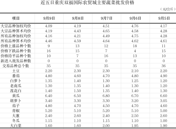双福国际农贸城2025年9月9日蔬菜算数批发价环比平稳