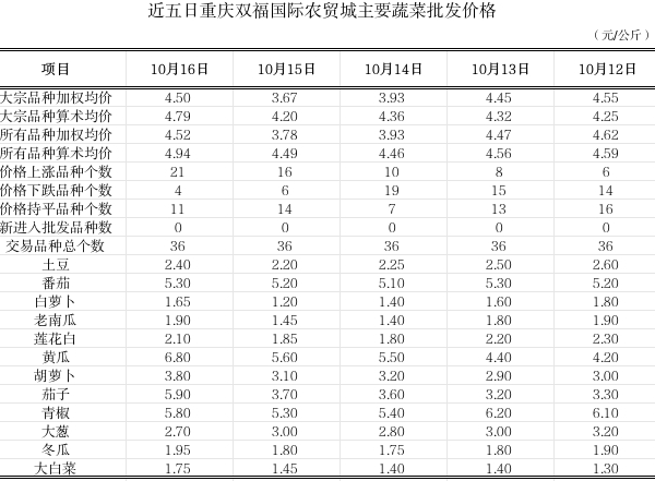 双福国际农贸城2025年10月16日蔬菜算数批发价环比明显上涨