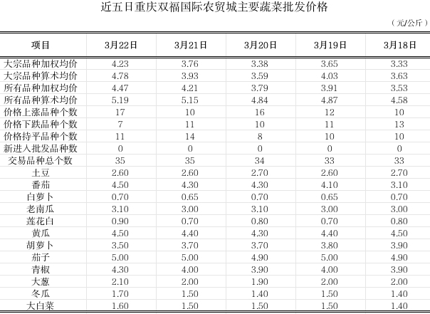 双福国际农贸城2026年3月22日蔬菜算数批发价环比平稳