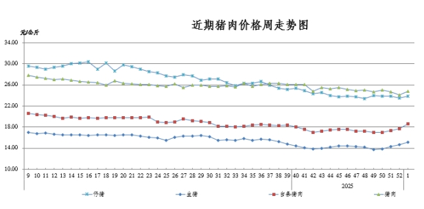 据市农业农村委监测,第1周全市猪肉零售均价24.83元/公斤,环比涨2.82%,同比跌15.22%;比农业农村部监测的全国数据高8.89%。
