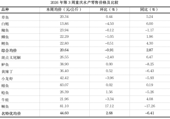 2026年第3周重庆渔业市场周报(总第151期)