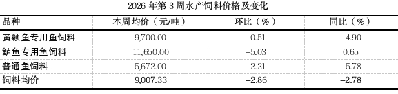 二、鱼饲料价格小幅下跌
