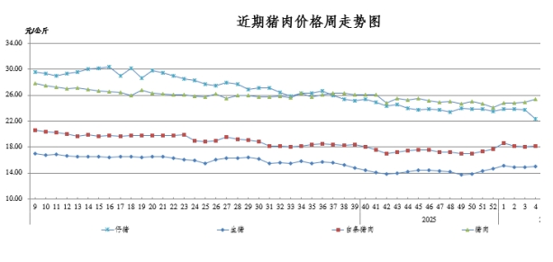据市农业农村委监测,第4周全市猪肉零售均价25.39元/公斤,环比涨1.67%,同比跌1.81%;比农业农村部监测的全国数据高7.72%。