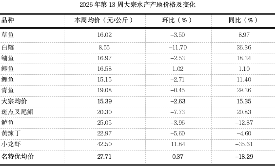 (一)水产产地价格小幅下跌