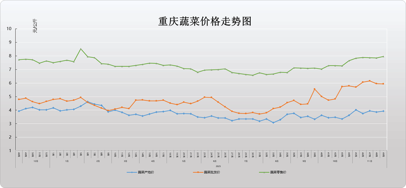 2025年第49周重庆蔬菜价格走势图