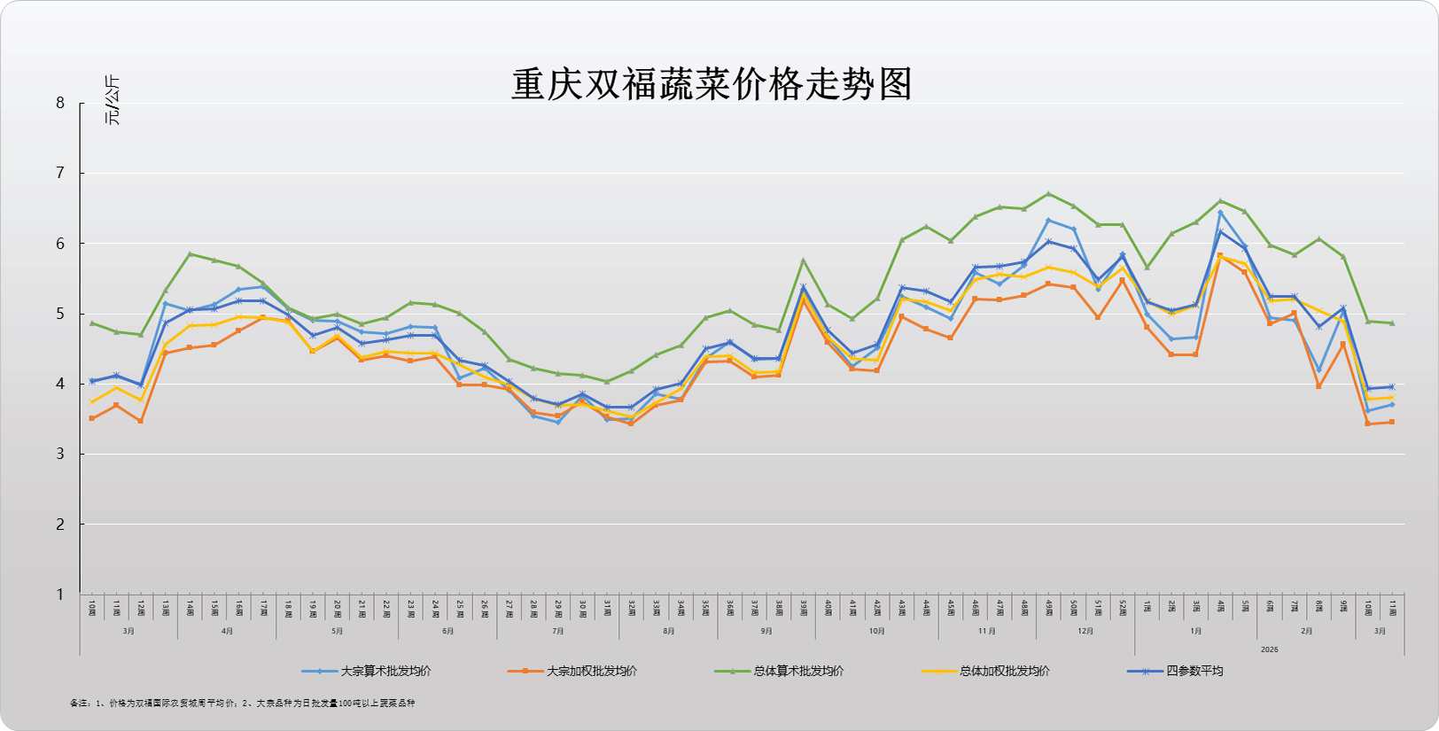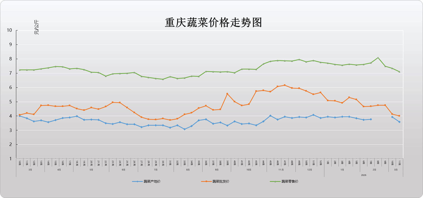 2026年第11周重庆蔬菜价格走势图
